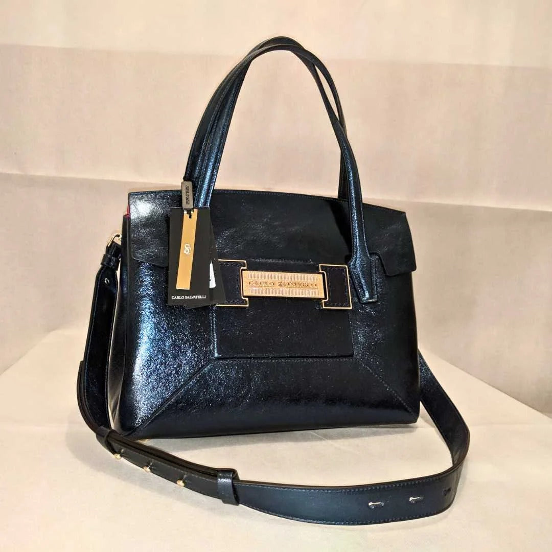 With its sleek silhouette and spacious interior, the Carlo Salvatelli Diamanté Bag seamlessly blends style and functionality. Whether you’re attending a lavish soirée or a chic dinner party, this statement piece is sure to turn heads and elevate your ensemble to new heights of sophistication.