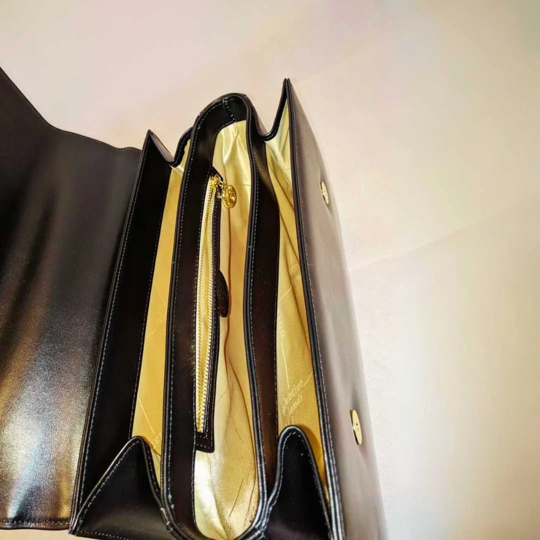 Whether it’s for a formal occasion or everyday use, the Black Valantino Orlandi Leather Handbag is a versatile statement piece that elevates any ensemble. With its impeccable craftsmanship and meticulous attention to detail, it epitomizes the uncompromising standards of luxury synonymous with the House Valentino Orlandi. Indulge in the essence of refined sophistication with this exquisite accessory, a testament to timeless allure and understated glamour.